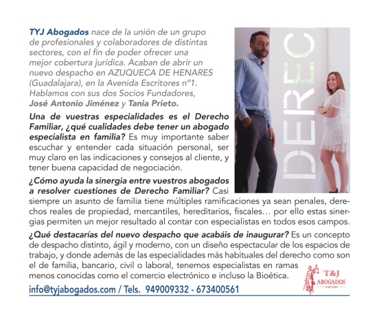 El despacho TYJ Abogados, nace de la unión de profesionales y colaboradores de distintas ramas del Derecho, siendo nuestra prioridad, la defensa y asesoramiento integral de nuestros clientes, ofreciendoles los mejores servicios de asesoría y representación jurídicas en todos los ámbitos.